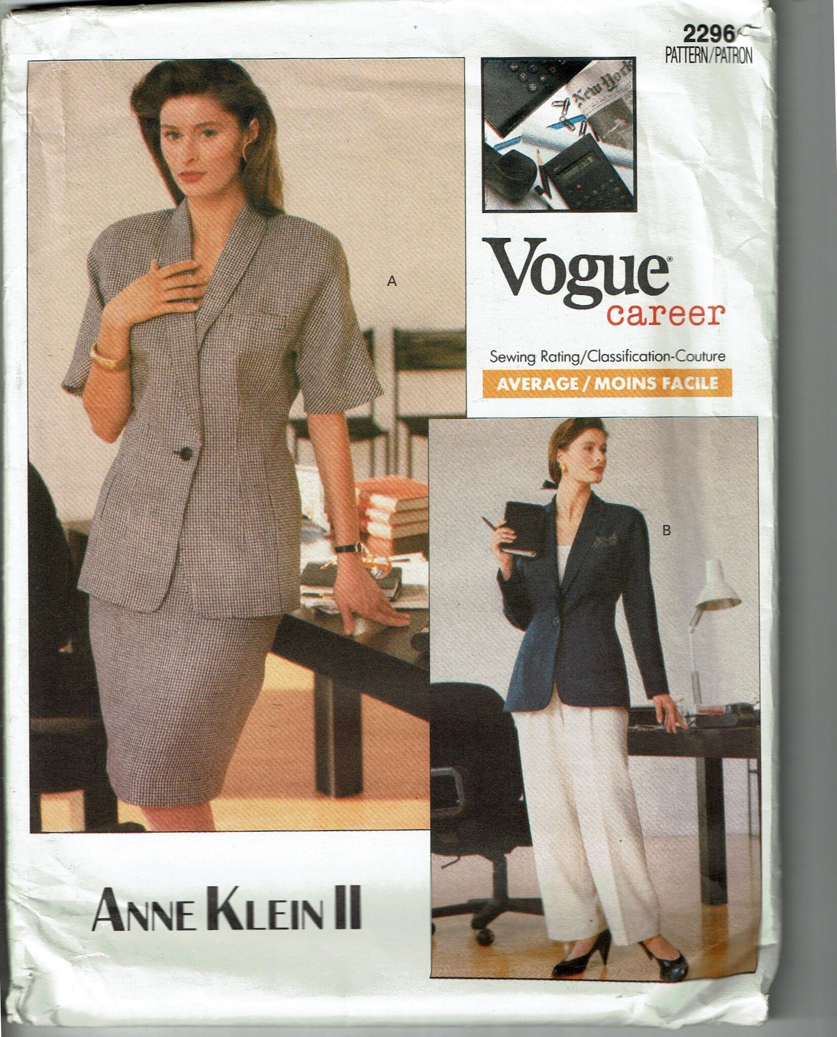 Vogue Pattern 2953 Anne Klein Designer Suit Jacket And Skirt Sizes 6 Through 12 Sewing Pattern Heaven